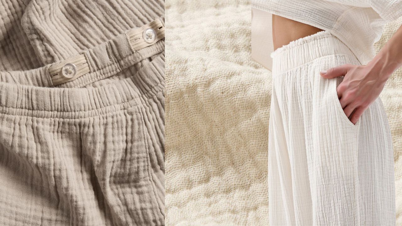 Musselin er et lett og luftig stoff som består av to tynne lag vevd sammen. Det har en myk, lett krøllete overflate og føles behagelig mot huden. Mange vil kjenne igjen strukturen fra tepper og kluter til baby. Stoffet er pustende og absorberende, noe som gjør det godt egnet til plagg som skal være komfortable og svalende. Vær oppmerksom på at musselin ofte selges uvasket som metervare, og da kan stoffet fremstå helt flatt og glatt. Det er derfor viktig å vaske det før du syr, både for å ta høyde for krymp og for å få frem strukturen.